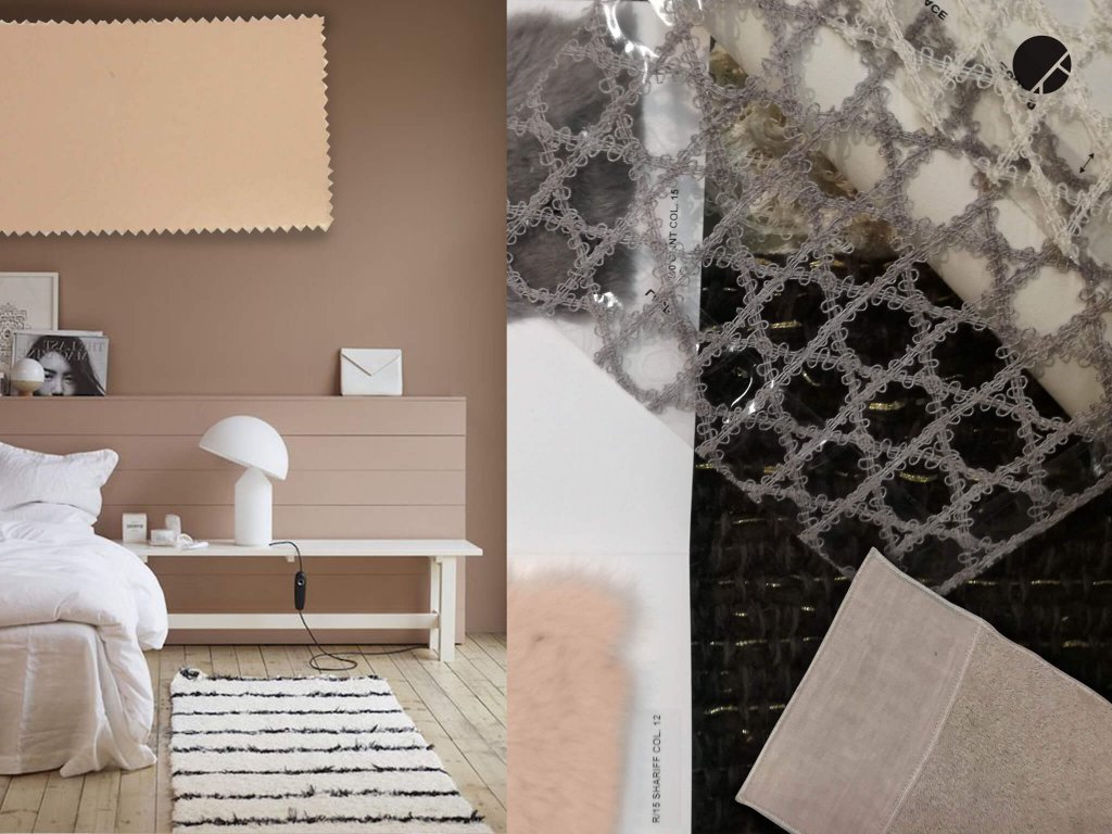 Il rosa cipria è uno dei colori di quest’anno, perfetto da abbinare a uno stile metropolitano, magari abbinando agli elementi rosa il cemento o il parquet in rovere chiaro a terra. In questo modo si addolciscono i tratti urban più marcati, mantenendo comunque uno stile sofisticato. Puoi trarre ispirazione dal mood qui sotto a destra: il soggiorno può essere caratterizzato dal divano e dal tappeto, ad esempio l’Havana di Elitis che presenta pagliuzze ramate all’interno della trama abbinato al divano M.a.s.s.a.s. di Moroso. Un altro ambiente che può essere prefetto in rosa cipria è la camera da letto: in questo caso elementi adatti al rinnovo sono la testata del letto, che sia in viscosa in lino o cotone, e i tendaggi, ad esempio le tende Lace di Sahco, che riprendono la delicatezza dei pizzi antichi e stanno benissimo davanti a grandi finestre ricche di luce.